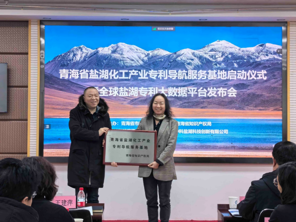 儀式上,青海省知識產權局相關負責人為青海省鹽湖化工產業專利導航服務基地建設單位——中國科學院青海鹽湖研究所授牌。