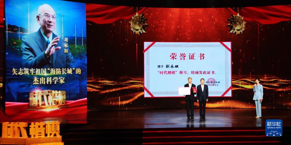 9月26日,“時代楷模”發布儀式現場宣讀《中共中央宣傳部關于授予劉永坦同志“時代楷模”稱號的決定》。新華社記者 潘旭攝
