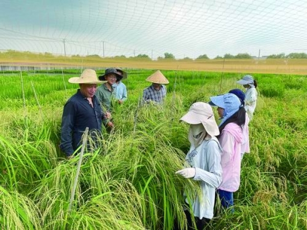 何祖華(左一)帶領(lǐng)學(xué)生在田間調(diào)查水稻抗病性。課題組供圖