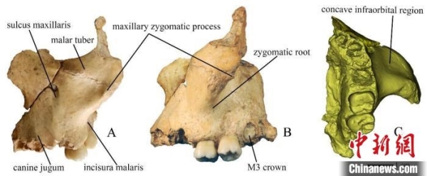 華龍洞6號左側上頜骨及顴骨。中科院古脊椎所供圖