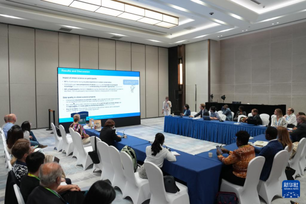9月22日,代表在第五屆世界生物圈保護區大會的一場邊會上交流。新華社記者 黃宗治 攝