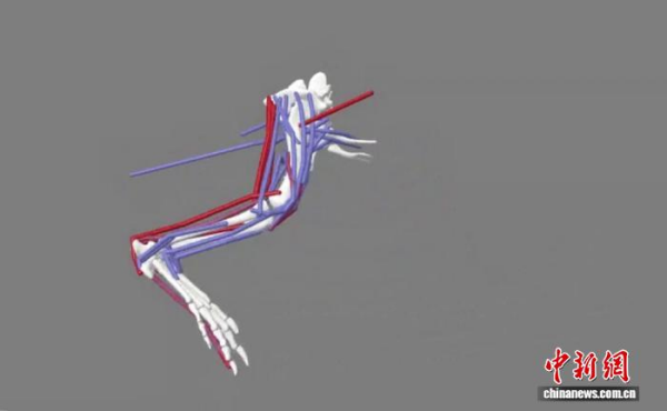 美洲短吻鱷后肢的肌肉骨骼模擬。中國科學(xué)院古脊椎所 供圖