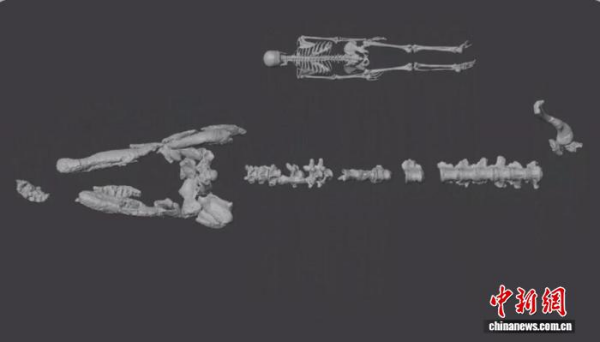 格蘭德恐鱷(TMM43632-1)骨骼復(fù)原圖。上方1.6米高人體骨骼(?Artec?3D)以供比例參考。中國科學(xué)院古脊椎所 供圖
