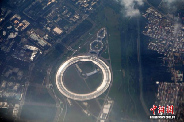 2025年8月30日,客機飛過北京懷柔科學城時,航拍高能同步輻射光源(HEPS)大科學裝置。中新網記者 孫自法 攝