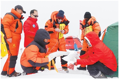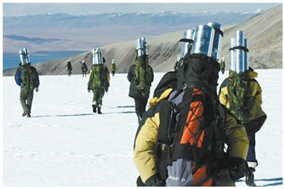 青藏高原海拔5500米以上的山口風(fēng)雪肆虐,這條冰雪之路上時(shí)常出現(xiàn)科考隊(duì)員的身影。十步一小歇,百步一大歇……科考隊(duì)員爬冰臥雪,在茫茫雪原上地毯式掃描,探尋冰層下封鎖著的有關(guān)氣候變化的蛛絲馬跡。