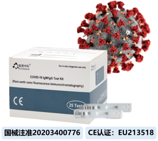 稀土納米探針新型冠狀病毒IgM/IgG抗體快速檢測試劑盒及國家醫療器械注冊證號、歐盟CE認證編號