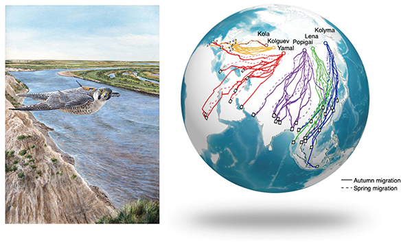 鳥類遷徙是最受關注的自然奇觀之一。中國科學院動物研究所詹祥江研究團隊通過整合多年衛星追蹤數據和種群基因組信息,建立了一套北極游隼遷徙系統,綜合運用生態學、遺傳學、神經生物學多學科交叉方法,從行為、進化、遺傳、生態及全球氣候變化等維度,揭示氣候變化是鳥類遷徙路線和遷徙方向形成的主要原因,首次發現鳥類長距離遷徙的關鍵基因ADCY8。2021年3月3日,研究成果在《自然》雜志作為封面文章發表,并被同期亮點評述“再次證明了跨學科研究的價值,這種學科交叉的形式將不同領域的證據放到具體的背景下,得出新的見解,突破科學的邊界”。