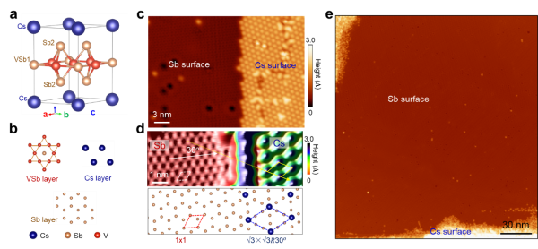 CsV3Sb5的原子結(jié)構(gòu)與解理面的STM圖像