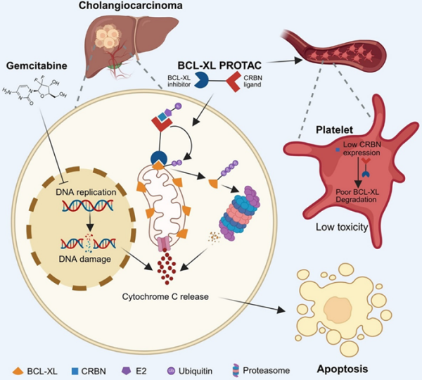 BCL-XL PROTAC協(xié)同吉西他濱治療膽管癌的作用示意圖