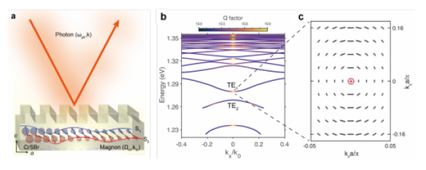 該研究在二維磁性半導體超表面中構建了一種磁振子—光子界面,通過利用二維磁性半導體中強光—物質相互作用與磁電效應之間的協同效應,在CrSBr磁性光子結構中展示了利用外磁場或相干磁振子對激子極化激元進行靜態和超快調控的能力。更重要的是,該研究觀測到了依賴于磁振子模式和動量的磁振子—激子極化激元相互作用,為泵浦光子到光學磁振子的直接動量轉移提供了有力證據,表明強耦合磁振子—激子極化激元雜化態已形成,揭示了磁性體系中自旋、磁振子與光子之間的相互作用特性。