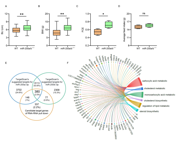 該研究表明,miR-200a/200b主要通過作用于能量代謝相關靶基因和信號通路來調控營養利用效率,這為解析高產與節糧性狀的耦合調控機制及相關性狀的精準改良提供了重要理論依據和技術支撐。