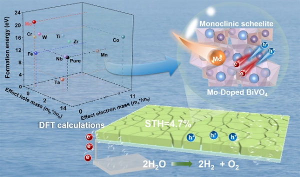 近日,中國科學院大連化學物理研究所科研團隊在BiVO4光陽極研究領域取得進展。團隊基于密度泛函理論計算,通過理論模擬篩選與實驗相結合,設計合成了鉬(Mo)摻雜的BiVO4光陽極,解決了MOD制備BiVO4光陽極中存在相不純、電荷復合嚴重等導致活性不高的問題,實現了四方相的抑制生成與高載流子遷移率的兼顧,提升了其光電催化性能。