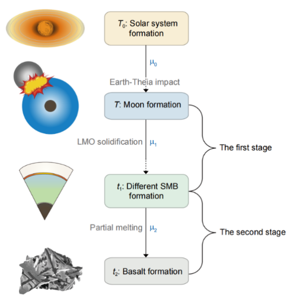 月海玄武巖初始Pb同位素兩階段演化模型示意圖