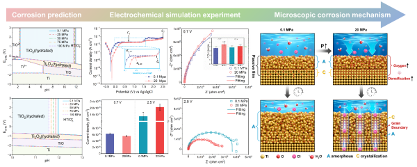 深海極端服役環(huán)境對裝備結(jié)構(gòu)材料耐蝕性要求頗高。鈦及鈦合金憑借優(yōu)異的耐蝕性,成為深海探測、油氣開發(fā)等裝備的關(guān)鍵結(jié)構(gòu)材料?,F(xiàn)有研究聚焦鈦表面鈍化膜結(jié)構(gòu)損傷引發(fā)的宏觀性能退化,但對靜水壓力環(huán)境下鈍化膜從原子尺度到宏觀尺度的演化規(guī)律缺乏認識,微觀機制與宏觀規(guī)律之間的關(guān)聯(lián)尚未建立,制約深海鈦合金精準設(shè)計與防護優(yōu)化。