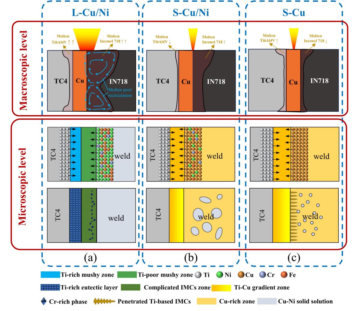 Ti-6Al-4V鈦合金具有高比強度與優異耐腐蝕性,Inconel 718鎳基高溫合金則兼具優異高溫強度與熱穩定性,二者均具有重要應用前景。實現二者高質量連接,可使同一構件同時滿足輕量化與高溫服役能力,在高端裝備研制中應用前景廣闊。然而,鈦合金與鎳基合金之間冶金相容性較差,直接焊接易生成大量脆性金屬間化合物,導致接頭韌性不足、承載能力受限。現有激光焊接技術雖可在一定程度上改善界面反應,但仍普遍存在界面組織不均勻、脆性相難以有效抑制、接頭強度有限等問題。