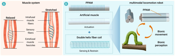 仿生肌梭結構啟發的自感知人工肌肉:結構示意與感知原理