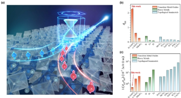 中國科學(xué)院寧波材料技術(shù)與工程研究所團(tuán)隊致力于高效SOT材料與器件研究。近期,科研團(tuán)隊利用晶體對稱性工程,創(chuàng)制出六角相5d金屬氧化物SrIrO3薄膜,證實了由非點式對稱性保護(hù)的拓?fù)涞依税虢饘賾B(tài),并利用其獨特的電子結(jié)構(gòu)實現(xiàn)了室溫下高達(dá)2.26的自旋霍爾角,將器件磁化翻轉(zhuǎn)功耗較傳統(tǒng)重金屬降低了一個數(shù)量級以上。