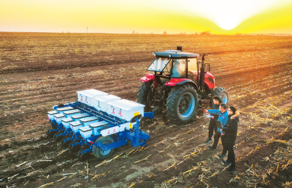 中國科學院正在發揮建制化、體系化優勢,聯合有關部門和地方政府組織開展“黑土糧倉”科技會戰,以科技支撐實施國家黑土地保護工程。圖為2021年3月9日,中國科學院計算技術研究所智能農機團隊在吉林省四平市梨樹縣為四平東風農機公司免耕播種機提供智能化升級技術支持,指導開展春耕備耕。 中國科學院供圖