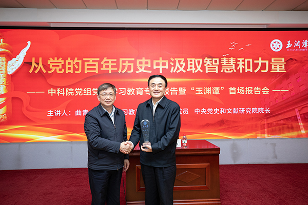 “玉淵譚”講座由中科院機關(guān)發(fā)起設(shè)立,以“科學(xué)、文化、人生”為載體,以“悟道、崇德、力行”為歸依,致力于建成高端選題、大家主講、品質(zhì)優(yōu)異、特色鮮明的學(xué)術(shù)交流平臺、思想?yún)R聚平臺、文化建設(shè)平臺。講座圍繞黨的政策理論、國際國內(nèi)形勢、科技發(fā)展態(tài)勢、科研管理改革、經(jīng)濟社會發(fā)展、文化藝術(shù)哲學(xué)等領(lǐng)域重大課題,邀請國內(nèi)外知名專家學(xué)者交流前沿思想和學(xué)術(shù)成果,分享科學(xué)文化與人生感悟,促進科學(xué)精神與人文精神融合、機關(guān)文化與創(chuàng)新文化融合、素質(zhì)提升與能力提升融合,持續(xù)推動模范機關(guān)建設(shè)。報告會上,侯建國向曲青山贈送了“玉淵譚”首場報告紀(jì)念牌。