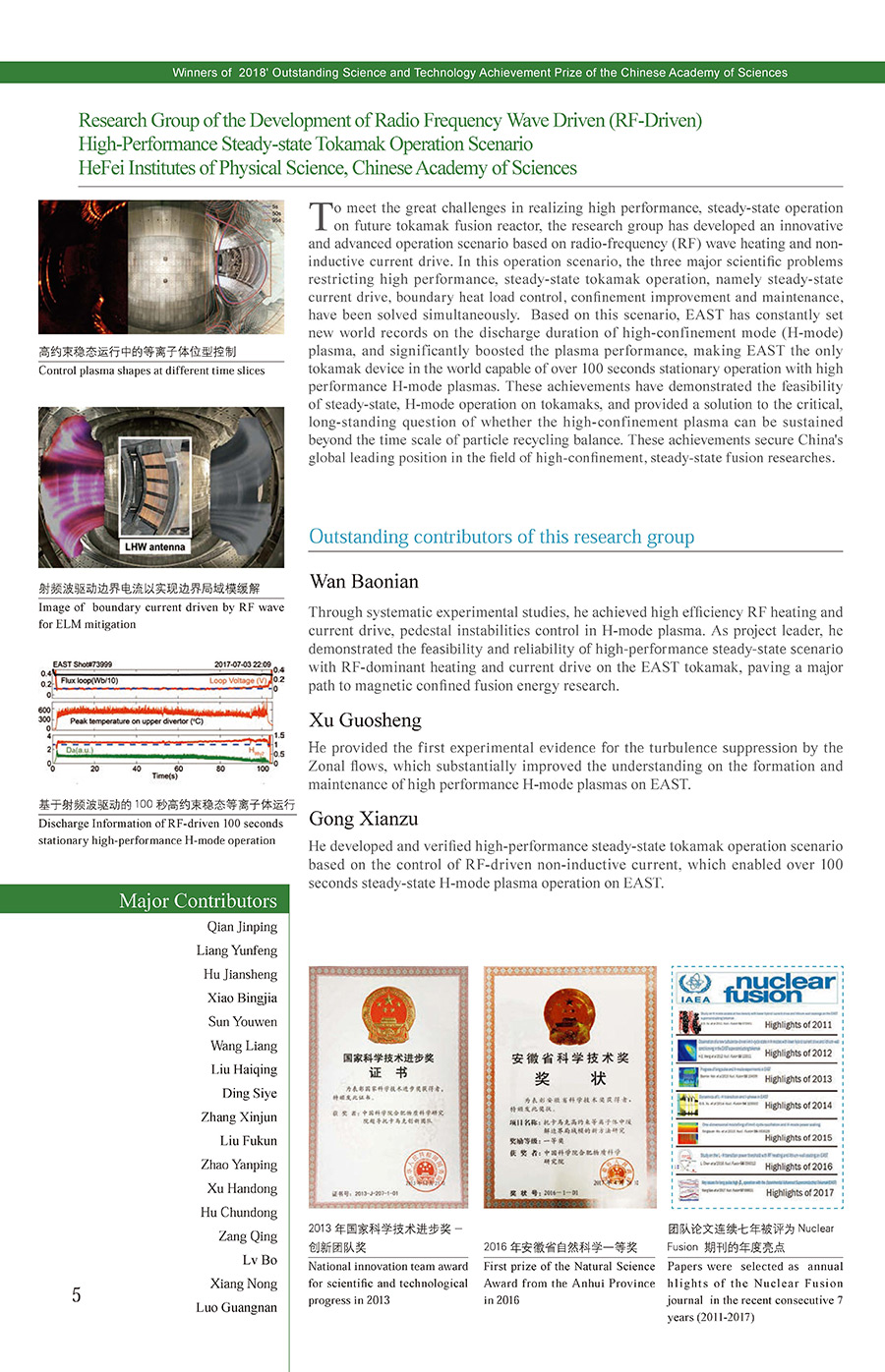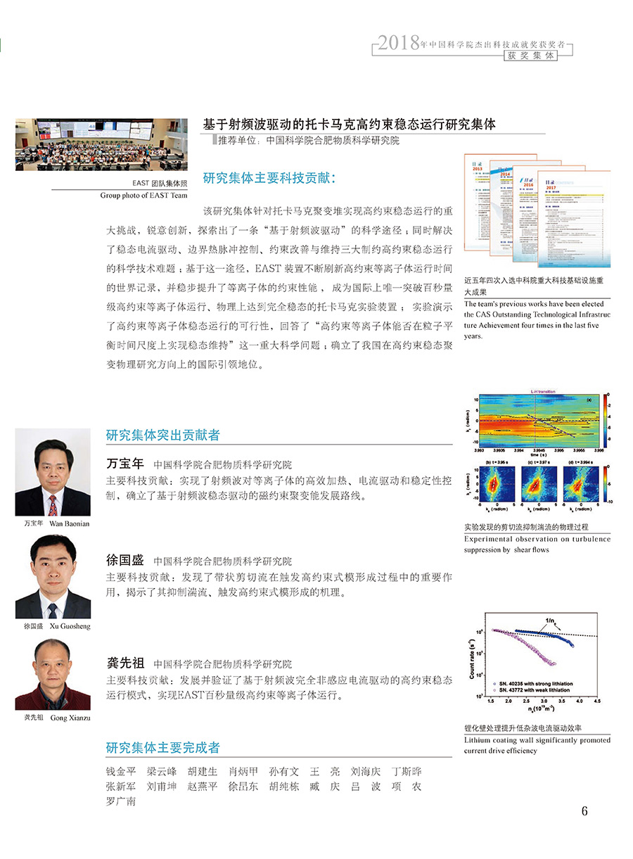 獲獎集體:基于射頻波驅動的托卡馬克高約束穩態運行研究集體