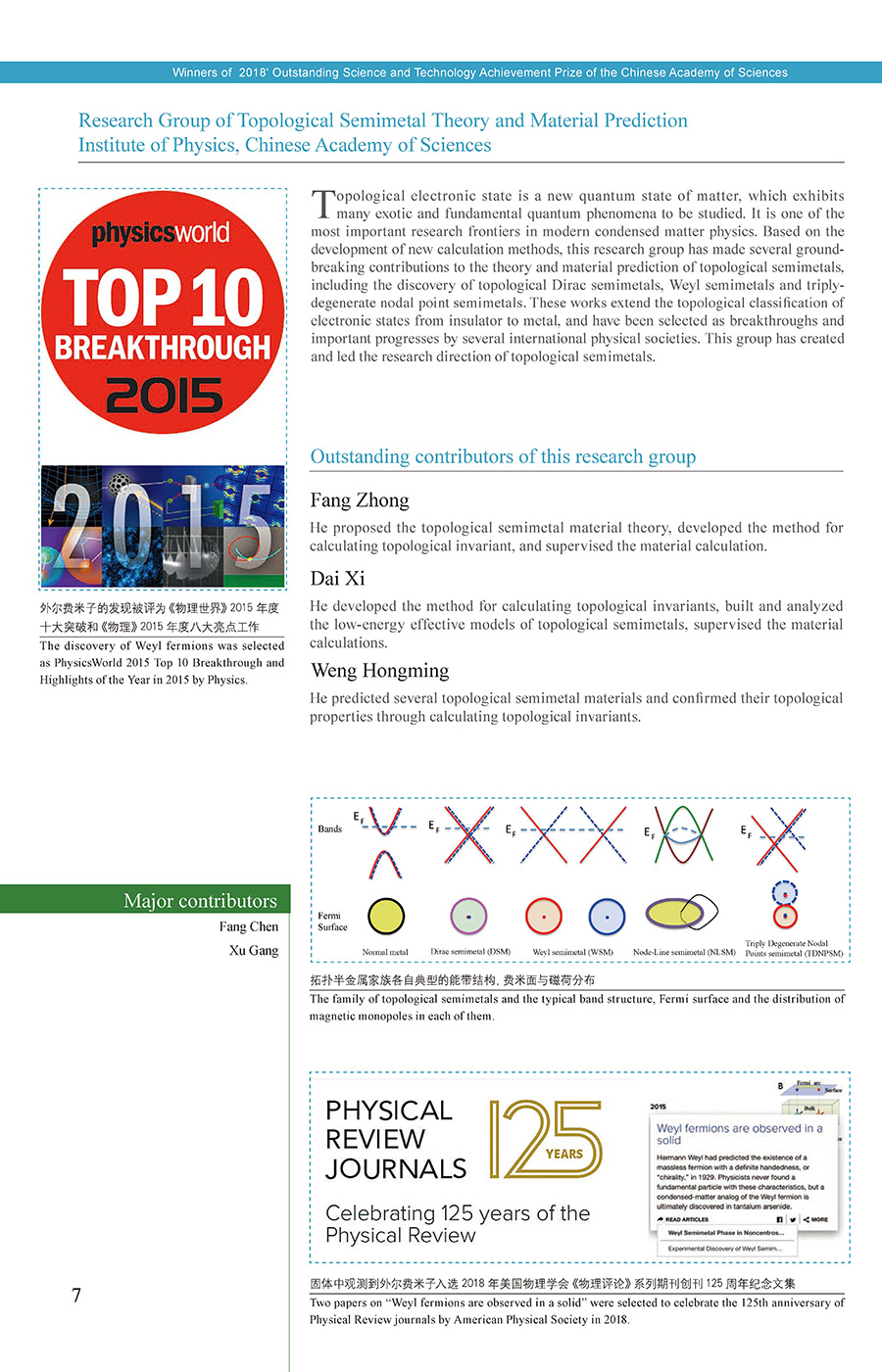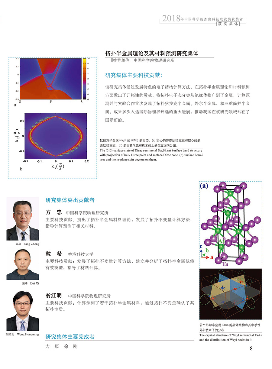 獲獎集體:拓撲半金屬理論及其材料預測研究集體