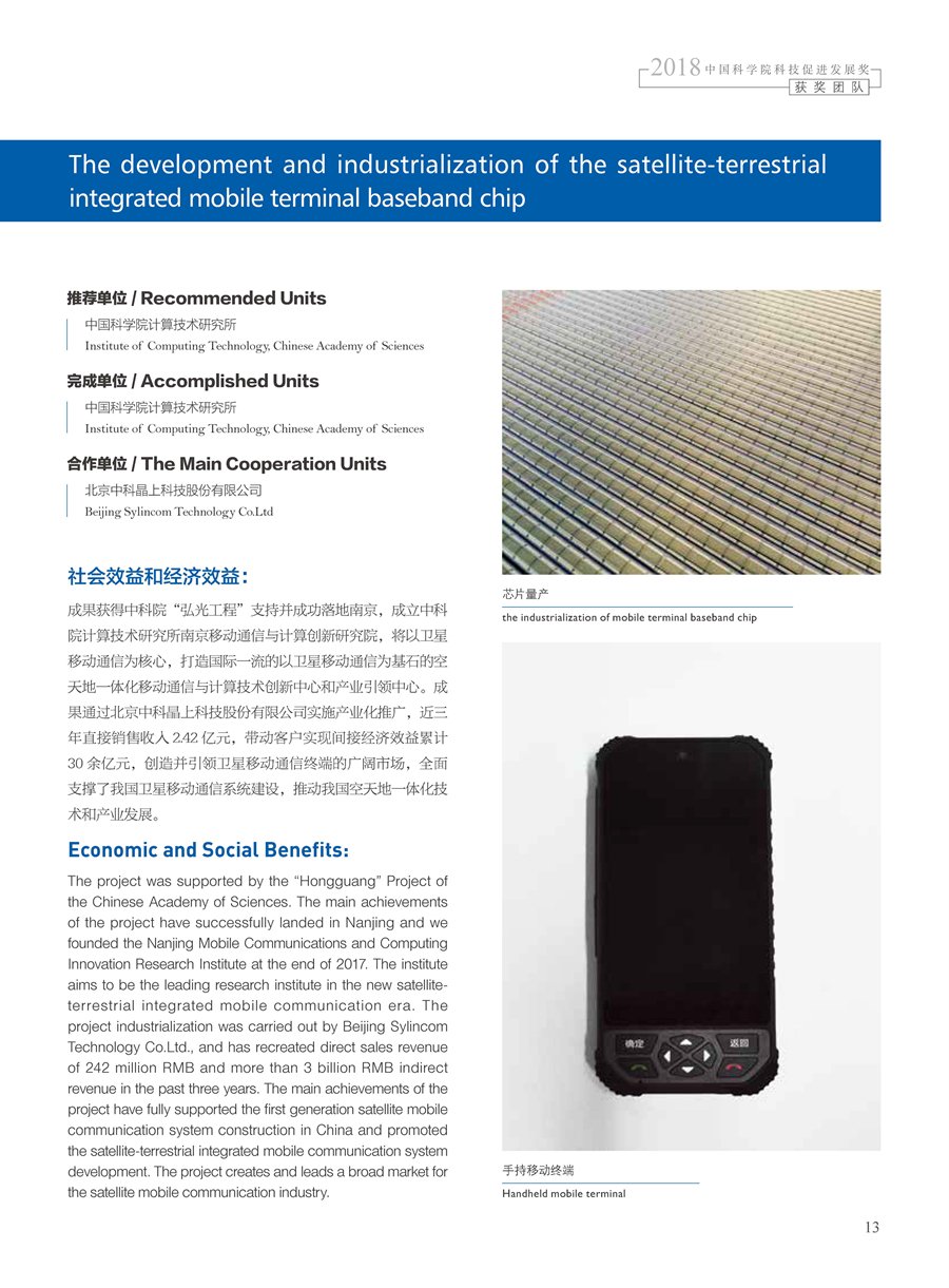 獲獎團隊:空天地一體化終端芯片研制及產業化團隊