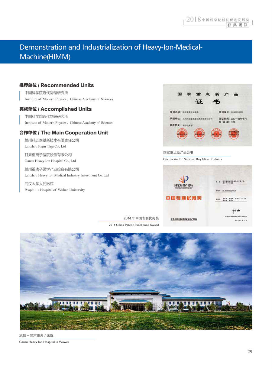 獲獎團隊:醫用重離子加速器示范及產業化團隊
