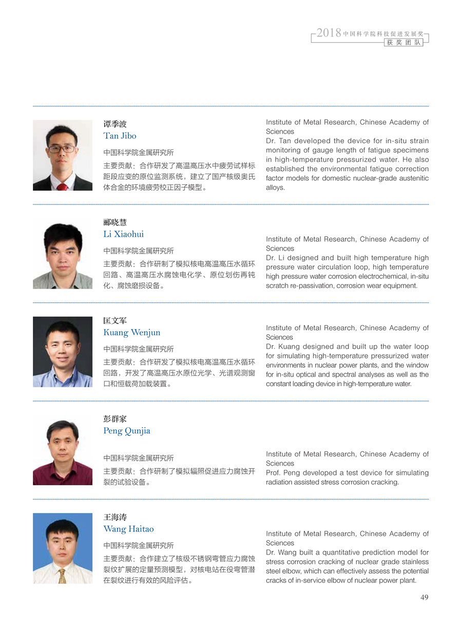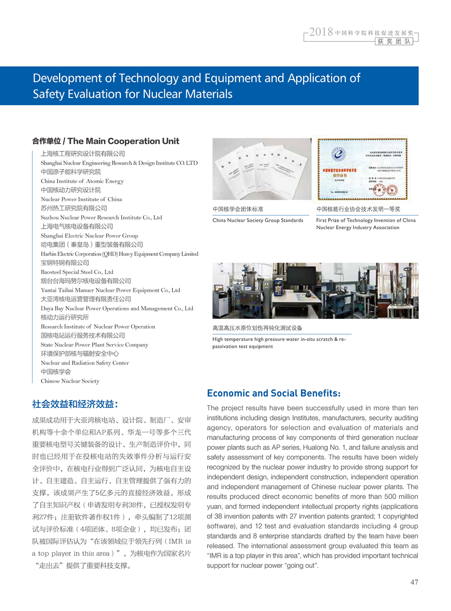獲獎團隊:核電材料測試技術與成套裝備及安全評價應用團隊