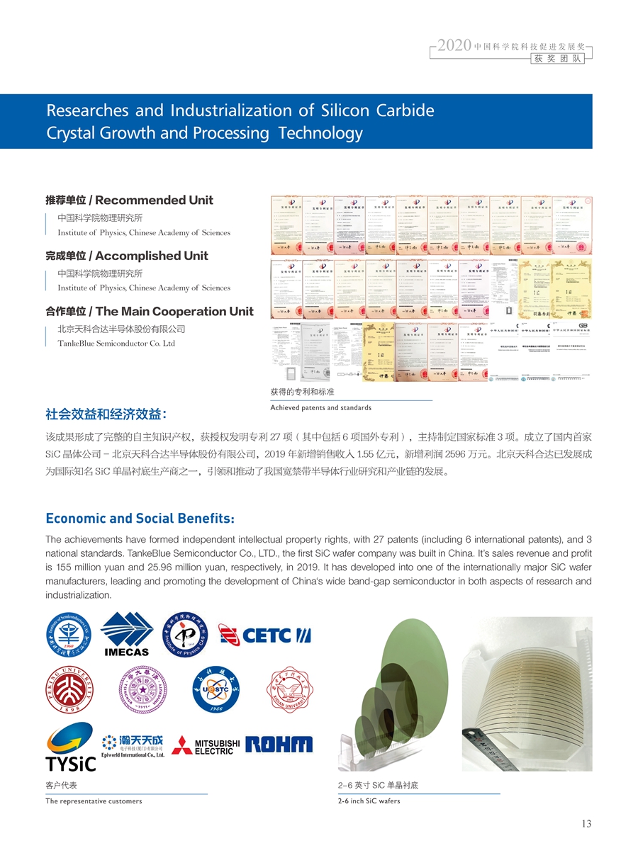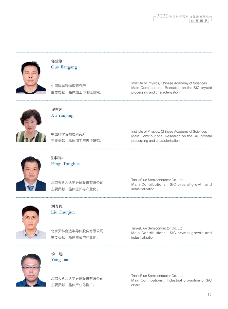 獲獎團隊:碳化硅晶體生長和加工技術研發及產業化團隊