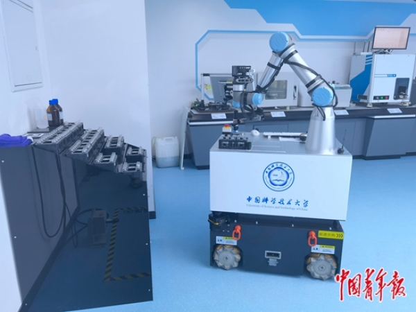 在中國科學技術大學的機器化學家實驗室,可以看見頗具科技感的一幕——一個體型“敦實”但動作靈活的機器人,在操作臺之間穿梭,伸出機械手臂配制試劑。實驗室另一邊,年輕科研人員正輸入指令,對機器人進行“隔空”控制。大部分情況下,這臺機器人會自主思考實驗的步驟和方案,像個不知疲憊的“小化學家”。