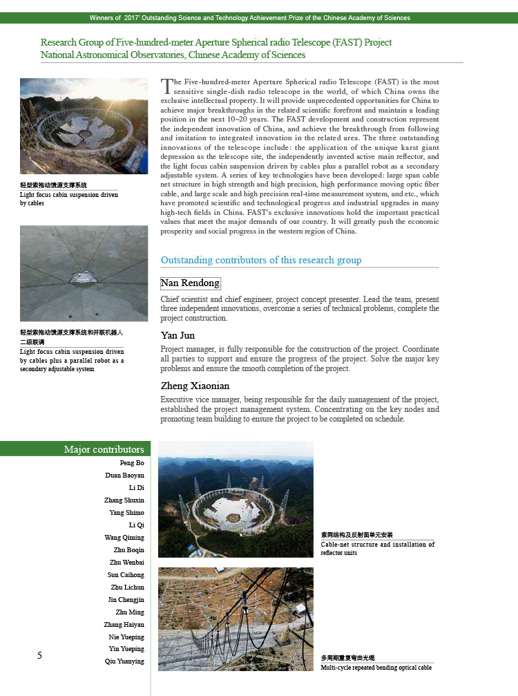 獲獎集體:500米口徑球面射電望遠鏡(FAST)工程研究集體