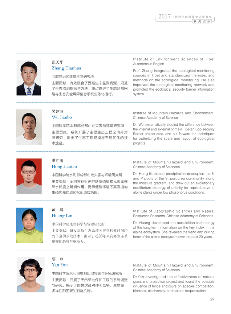 獲獎團隊:西藏生態安全屏障保護與建設成效監測與評估創新團隊