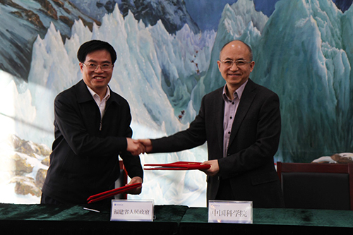 白春禮對福建省委、省政府長期以來給予中科院科研機構和各項事業發展的大力支持表示感謝。他指出,中科院一直高度重視與福建的科技合作工作,近年來,院省雙方圍繞福建經濟社會發展的主要科技需求,開展了大量的務實合作,取得了可喜進展和顯著成效。他表示,希望院省雙方以此次簽署深化科技合作協議為契機,進一步集聚優勢資源,圍繞福建戰略性新興產業培育發展、打造產業升級版和實現跨越發展的重大科技需求,組織優勢力量開展聯合協同攻關,突破一批制約福建重點產業發展的重大關鍵共性技術問題,力爭在福建產出一批具有顯著經濟社會效益的重大示范轉化工程、重大戰略性技術與產品。通過雙方共同努力,為促進福建創新驅動發展、創新型省份建設提供堅實的科技支撐。