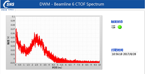 28日上午10時,在CSNS靶站譜儀控制室,科研人員緊張待命,進行質子束流打靶前的最后準備,期待共同見證工程歷史性的一刻。在中國科學院院士、CSNS工程總指揮兼工程經理陳和生發出指令后,從加速器引出的質子束流首次打向金屬鎢靶。10時56分,科研人員在靶站6號和20號中子束線分別測量到從兩個不同慢化器輸出的中子能譜,散裂中子源成功獲得中子束流。CSNS優質、按期完成了主要建設任務,質子束流在低流強和高流強狀態下均一次打靶獲得成功,表明加速器和靶站設計科學合理,證明了各項設備加工制造與安裝調試的高質量和高可靠性,調試進度大大優于國際上其他散裂中子源。