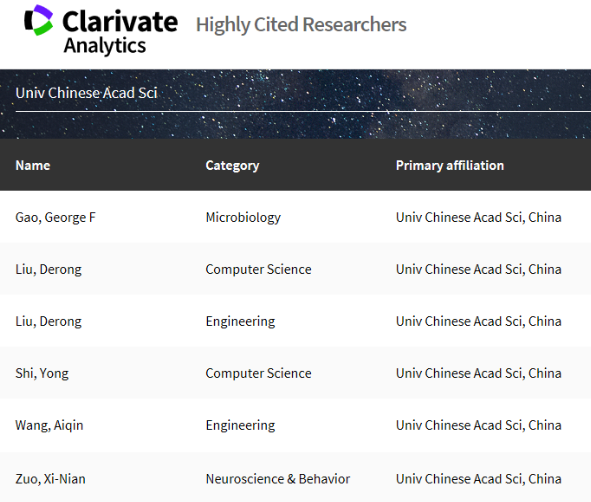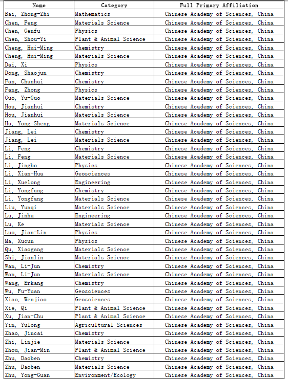 11月15日,科睿唯安(Clarivate Analytics)發布2017年“高被引科學家”名單及白皮書,遴選出過去10年間在相應學科領域發表高被引論文數量最多的科研人員。中國科學院共有55人(次)入選,在全球機構中排名第三,表現優異。其中,中科院下屬研究所入選44人(次),中國科學技術大學入選5人(次),中國科學院大學入選6人(次)。