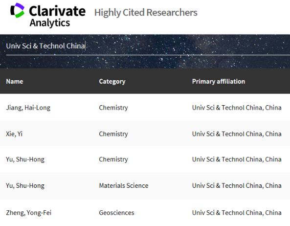 中國科大入選名單(5人次)
