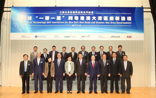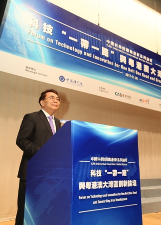 11月30日,由中國科學院指導,中國科學院控股有限公司(簡稱“國科控股”)和香港科技園公司共同主辦,中科院創新孵化投資有限責任公司(簡稱“國科創新”)和香港金融數據技術有限公司共同承辦的中國科學院聯動創新系列論壇之科技“一帶一路”與粵港澳大灣區創新論壇在香港科學園舉行。中國科學院院長白春禮、香港特別行政區行政長官林鄭月娥、中央人民政府駐香港特別行政區聯絡辦公室副主任譚鐵牛等出席論壇。白春禮和林鄭月娥在論壇上致辭。來自政府、科技界、金融界、企業界和媒體等各界代表300余人參加了論壇。