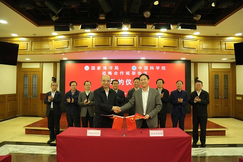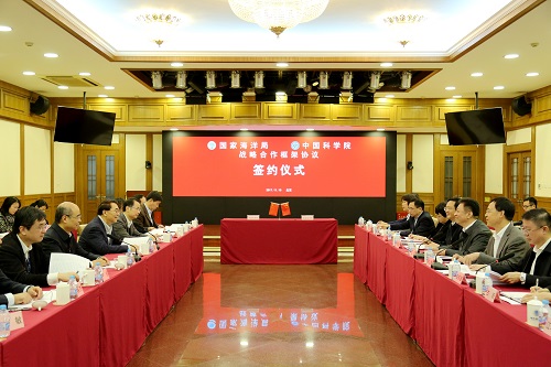 11月10日,中國科學院與國家海洋局戰略合作協議簽約儀式在京舉行。中科院院長、黨組書記白春禮和國家海洋局局長、黨組書記王宏出席儀式并講話,中科院副院長、黨組成員相里斌和國家海洋局副局長、黨組成員林山青代表雙方簽署戰略合作框架協議。