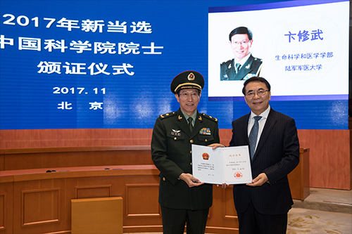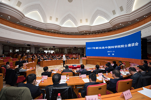 11月28日,2017年新當選中國科學院院士座談會在北京召開,中科院院長、學部主席團執行主席白春禮為新當選院士頒發院士證書并發表講話。