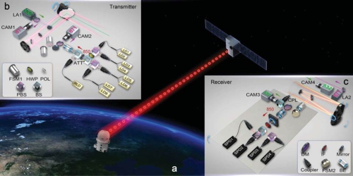 量子通信通常采用單光子作為物理載體,最為直接的方式是通過光纖或者近地面自由空間信道傳輸。但是,這兩種信道的損耗都隨著距離的增加而指數增加。由于量子不可克隆原理,量子通信的信號不能像經典通信那樣被放大,這使得之前量子通信的世界紀錄僅為百公里量級。因此,如何實現安全、長距離、可實用化的量子通信是該領域的最大挑戰和國際學術界幾十年來奮斗的共同目標。