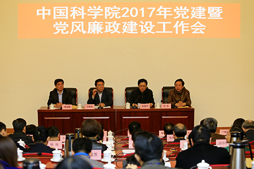 3月17日,中國科學院2017年黨建暨黨風廉政建設(shè)工作會在京召開。中科院院長、黨組書記白春禮,黨組副書記、副院長劉偉平,中央紀委駐中科院紀檢組組長、黨組成員李志剛,黨組成員、副秘書長何巖出席會議。會議由劉偉平主持。