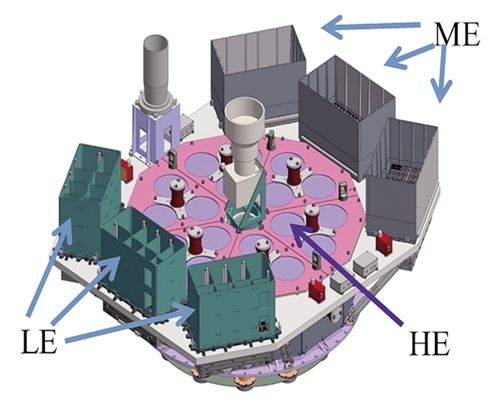 作為我國首顆空間X射線天文衛星,HXMT衛星其實具有三雙“慧眼”——其主要有效載荷包括高能X射線望遠鏡、中能X射線望遠鏡、低能X射線望遠鏡和空間環境監測器,能夠實現1—250keV(1000電子伏特)能段全覆蓋探測,并具有大天區和大有效面積巡天能力和高精度定點觀測能力。