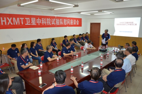6月14日,在硬X射線調(diào)制望遠(yuǎn)鏡(HXMT)衛(wèi)星發(fā)射前夕,受中國(guó)科學(xué)院黨組委托,中科院副秘書長(zhǎng)鄧勇一行專程奔赴酒泉衛(wèi)星發(fā)射中心,看望和慰問HXMT衛(wèi)星發(fā)射場(chǎng)試驗(yàn)隊(duì)全體隊(duì)員。中科院院士周又元、李惕碚、陳和生,HXMT衛(wèi)星工程副總設(shè)計(jì)師、中科院院士顧逸東,HXMT衛(wèi)星工程副總指揮、中科院重大科技任務(wù)局局長(zhǎng)王越超,高能物理研究所所長(zhǎng)王貽芳,國(guó)家空間科學(xué)中心副主任孟新等參加了慰問活動(dòng)。慰問座談會(huì)由地面應(yīng)用系統(tǒng)總指揮王煥玉主持。