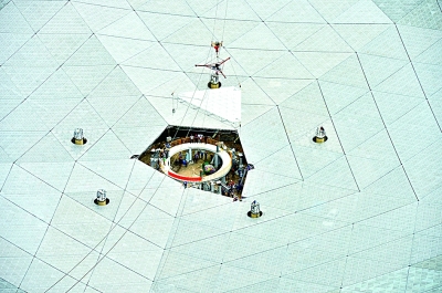 正在安裝中的“天眼”最后一塊反射面單元。剛攝/光明圖片