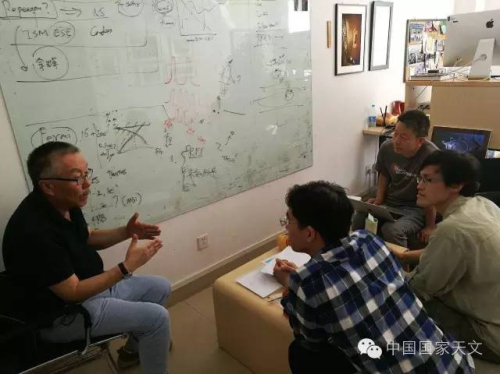 南仁東(左一)、FAST項目科學家李菂(右一)接受采訪