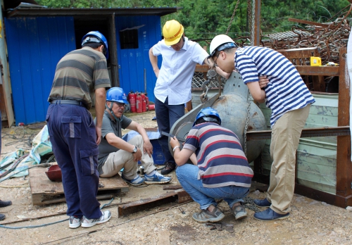 2014年,南仁東在大窩凼施工現場,牽索耳板檢測