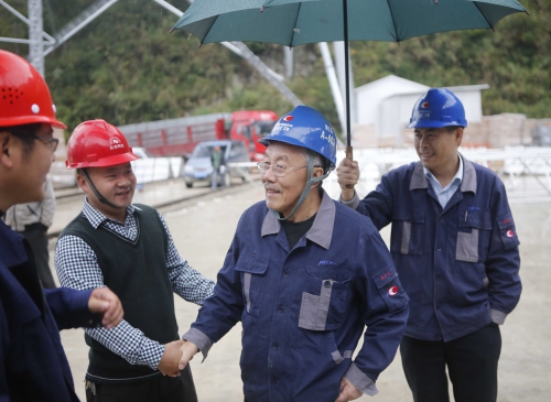 2015年大窩凼施工現場,南仁東與施工單位人員交流