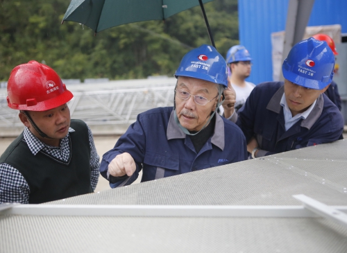 2015年大窩凼施工現場,南仁東指導反射面單元拼裝工作
