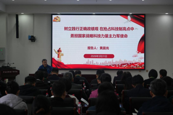 讀書班上,中心黨委書記、副主任黃晨光講授了《樹立踐行正確政績觀 在搶占科技制高點中勇擔國家戰略科技力量主力軍使命》專題黨課。黨課緊扣中心職責使命,帶領參訓同志深入學習習近平總書記關于樹立和踐行正確政績觀的重要論述,剖析科研機構政績觀偏差根源,并從領導干部與科研人員兩個層面明確實踐要求,部署中心學習教育工作。